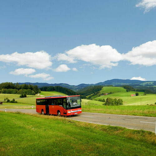 Busfahrpläne sowie Kontaktadressen für die Fahrt mit einem Taxiunternehmen finden Sie unter der Kachel „Anreise, Parken, Rückreise“.