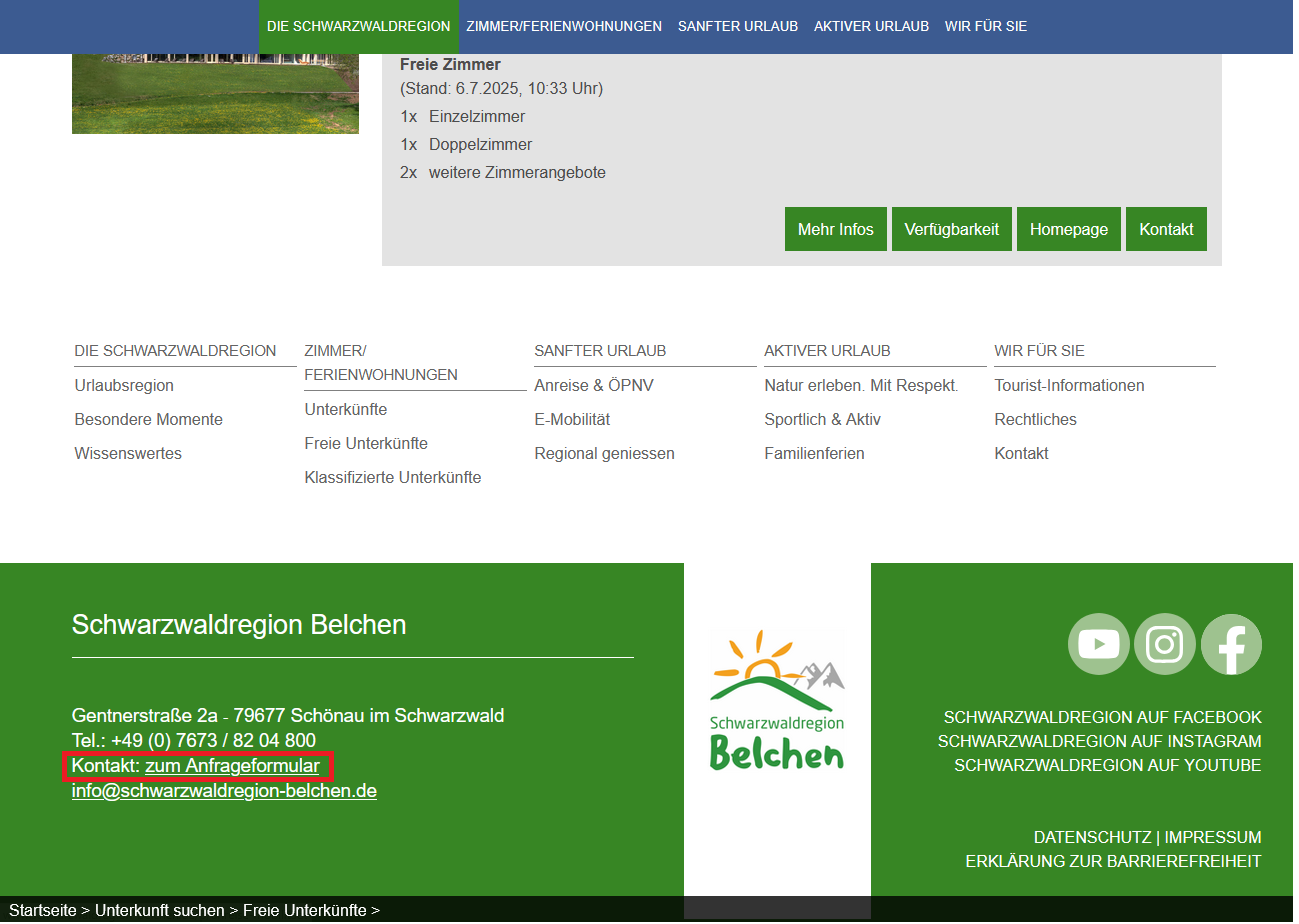 Ganz unten steht das Wort "Zum Anfrage · Formular".