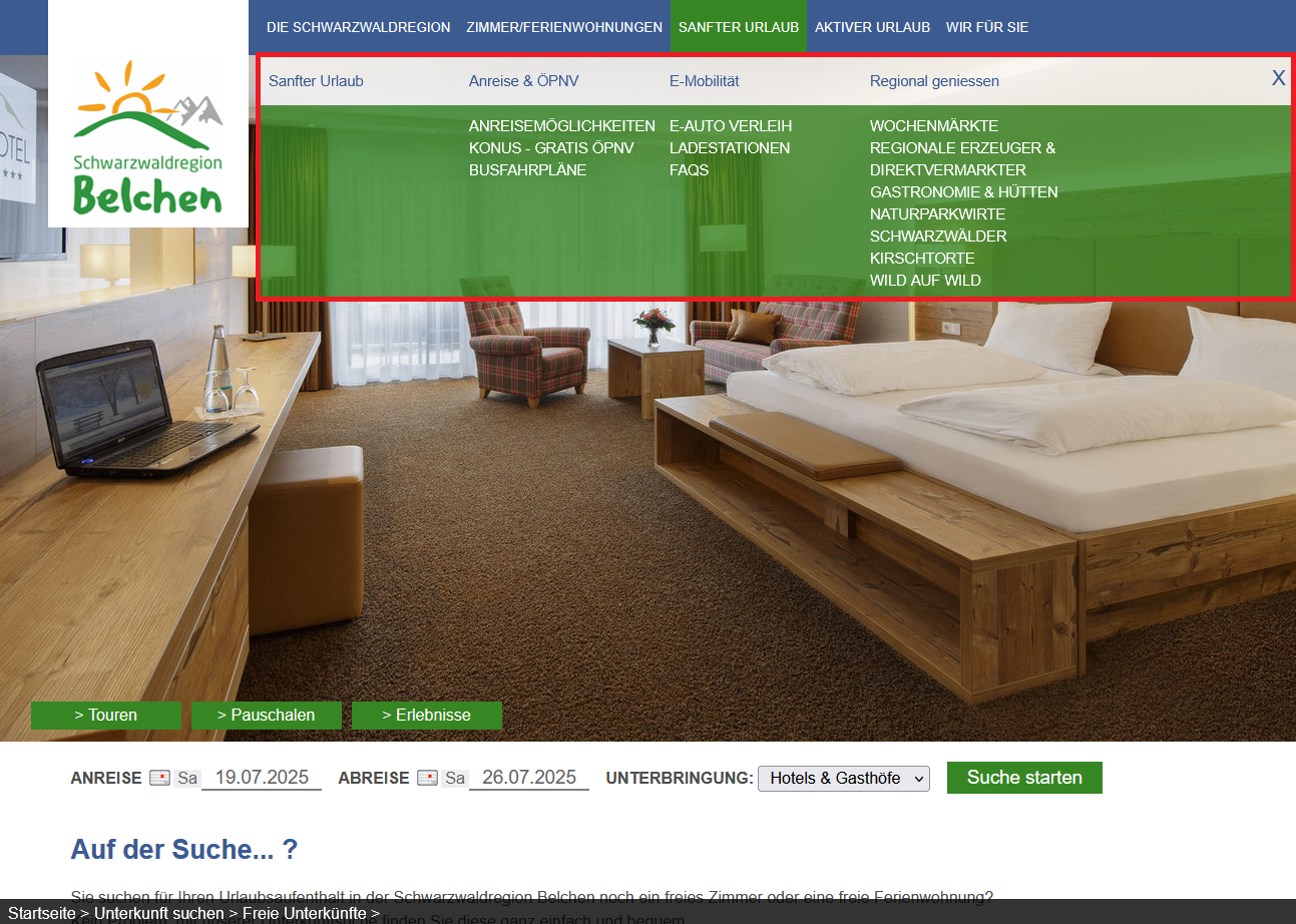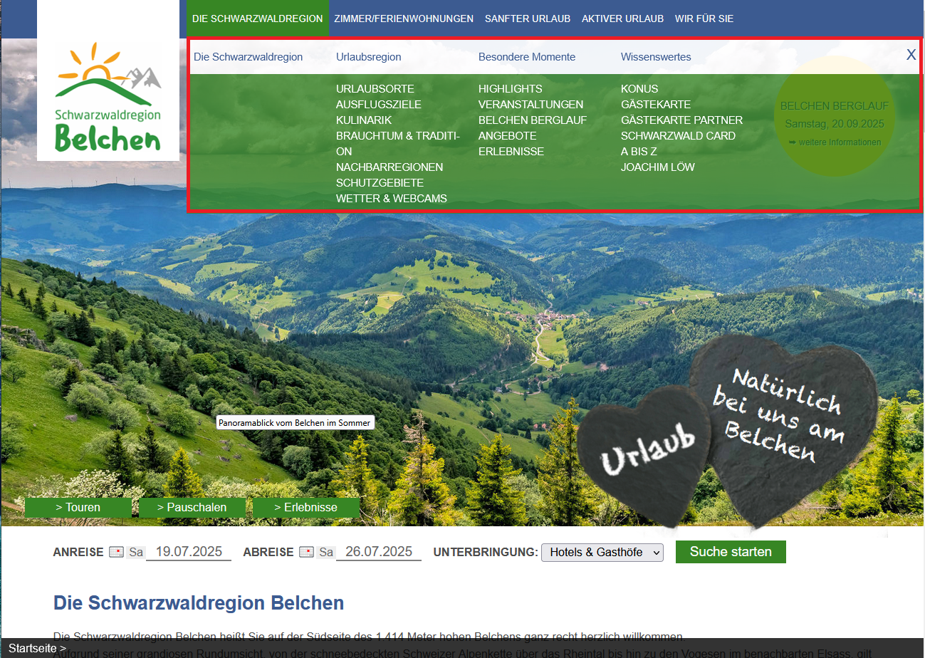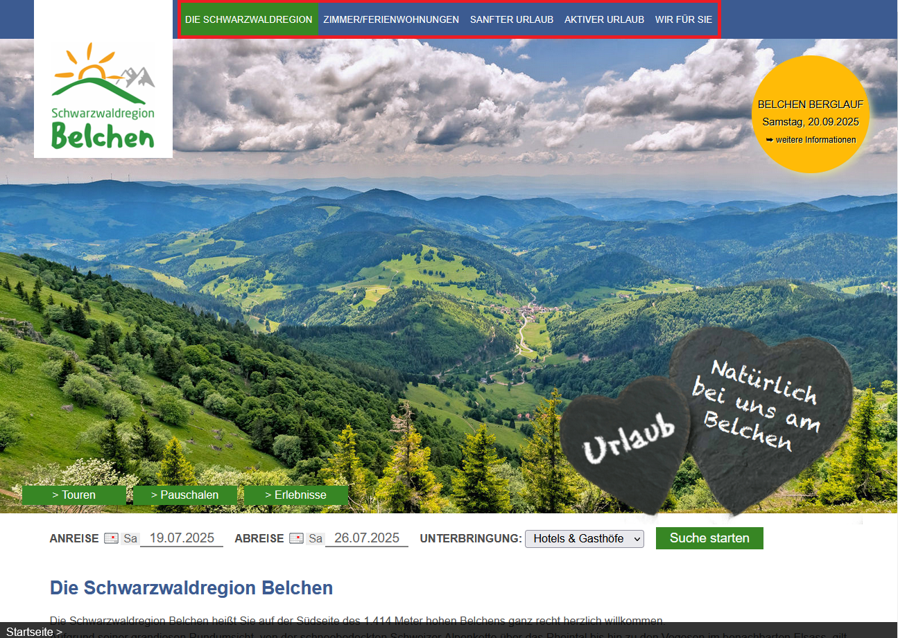 Das ist die Seite der Schwarz · Wald · Region Belchen.Die Seite wird auch Web · Seite genannt.