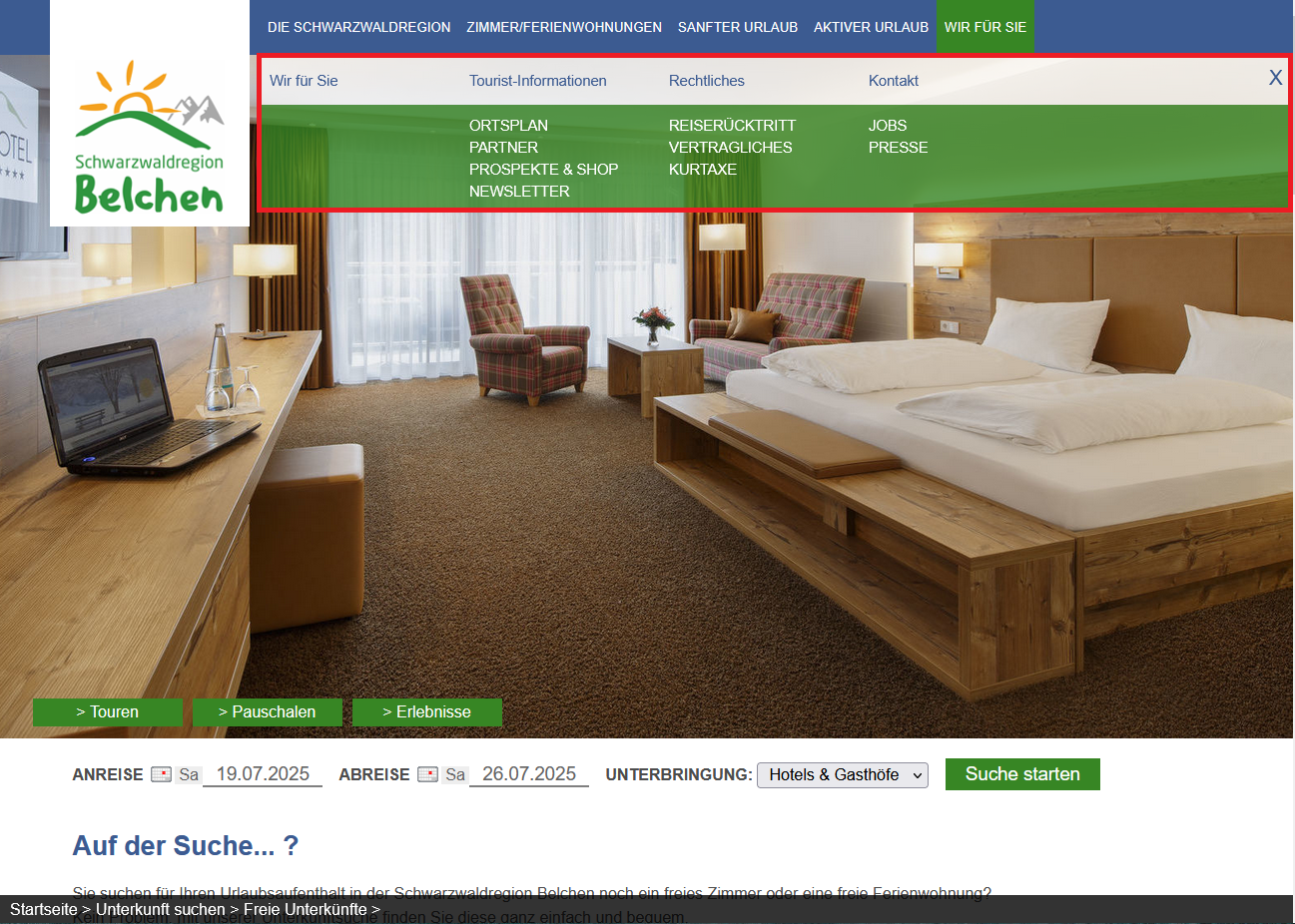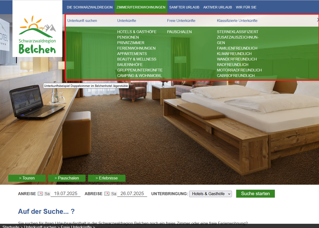 Sie finden im Bereich Zimmer und Ferien · Wohnungen folgende Informationen:- Hotels