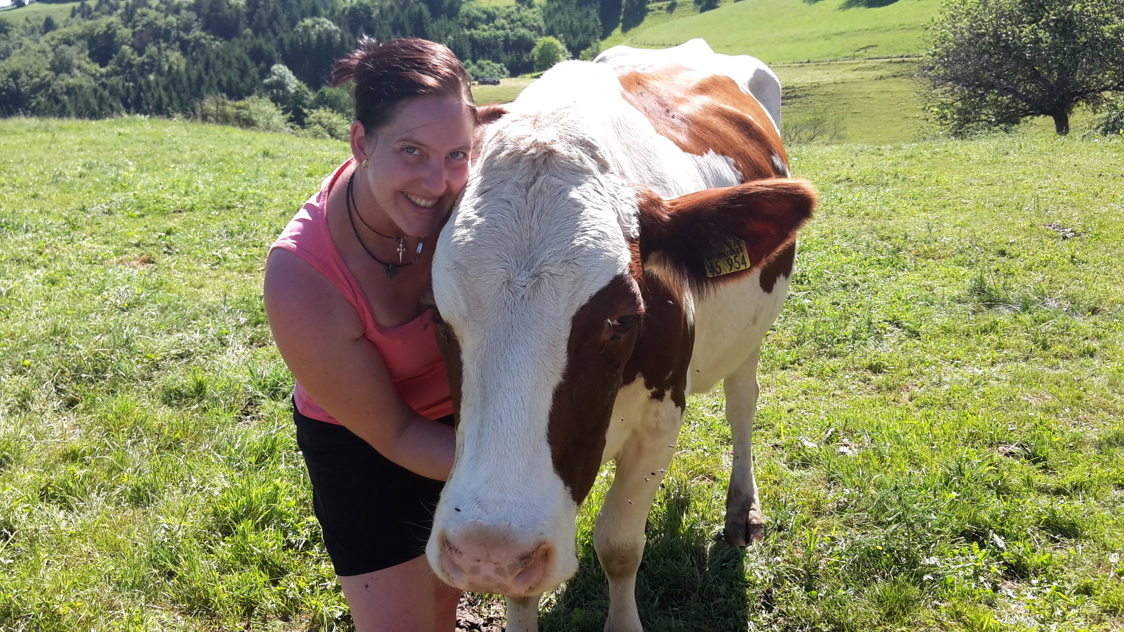 Nach dem Frühstücken übernehme ich die Büro-Tätigkeiten für unsere beiden Ferienwohnungen, schau nach meinen Gästen, kümmere mich um den Haushalt, ehe es mich am Nachmittag – ganz freiwillig - in den Stall zum Melken und Füttern der Kühe treibt. Und auch wenn ich diesen Weg vom Landhaus in den Kuhstall jeden Tag gehe, so wird mir doch beim Anblick des Belchengipfels, der umliegenden Schwarzwaldhöhen und der dazwischen liegenden Tälern immer wieder aufs Neue bewusst, wie wohl ich mich hier - fernab meiner eigentlichen Heimat - fühle.